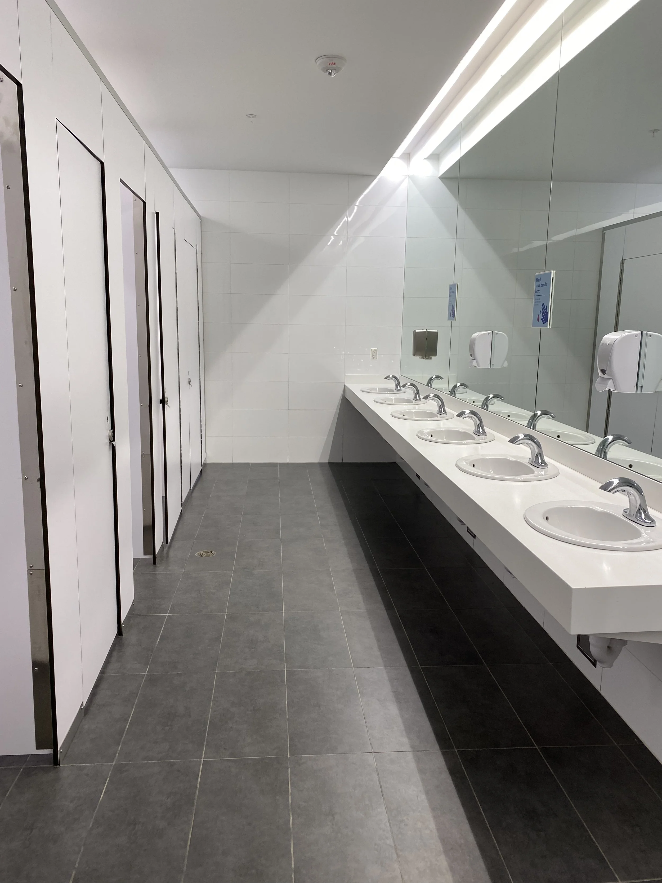 This is an accessible washroom with 1 stall suitable for mobility devices.